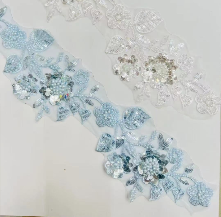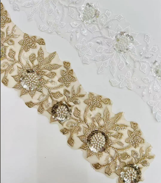 Новое прибытие декоративная одежда шить красивые плетеные у блестки с жемчужными кружевными кружевами. Он принимает комбинированный дизайн трехмерного ткачества веревки, блестящих блесток и блестящих бисеров, с богатым слоями и тонким штрихом. Он подходит для высококачественных украшений, таких как вечерние платья с высокой кутюр, свадебные платья, вечерние сумки и головные уборы, легко улучшая великолепие отдельных предметов.